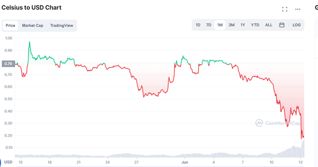 Celsius Network $CELUSD, uno dei principali prestatori di criptovalute, ha deciso di interrompere i prelievi, gli swap e i trasferimenti tra conti a causa dell'attuale volatilità del mercato. La mossa ha infine influenzato direttamente il prezzo del token nativo di Celsius Network, che è crollato del 50% a un nuovo minimo di 0,1855 dollari, secondo il sito web CoinMarketCap.