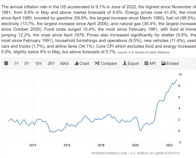 è balzata al 9,1%, il valore più alto dal 1981. Sebbene ci siano molte teorie sul perché l'inflazione stia dilagando, non sorprende che molte famiglie americane siano a corto di contanti. La conseguenza è che gli americani hanno risparmiato solo il 5,4% del loro reddito personale, un calo SIGNIFICATIVO rispetto al 12,4% dell'anno precedente.
