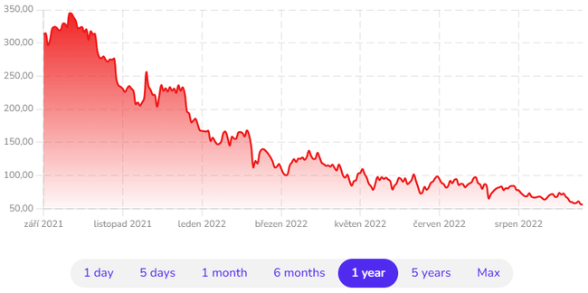 L'azienda è molto conosciuta, soprattutto tra gli appassionati di aziende in crescita. Non c'è da sorprendersi visto che la corsa al rialzo nel 2020 e 2021 ha visto il prezzo del titolo aumentare di oltre 6 volte. È davvero impressionante. Cathie Wood e il suo ARK Innovation ETF, che tra l'altro è il maggior azionista in termini di fondi, ne ha beneficiato molto, detenendo oltre il 7%. Ma dal picco dello scorso luglio, l'ETF è già sceso di quasi l'84%. Questo, ovviamente, ha avuto un forte impatto sul rendimento totale del fondo.