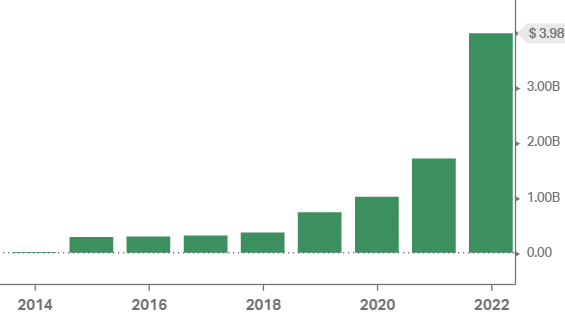 L'azienda è stata in grado di generare una notevole liquidità. Il flusso di cassa libero è stato di 392,1 milioni di dollari. L' azienda si è aiutata emettendo nuove azioni per un totale di 1,52 miliardi di dollari, un evento comune per le aziende in crescita. L'azienda sta aumentando regolarmente l'importo speso per le spese in conto capitale (CapEx), il che è un buon segno. L'anno scorso ha speso un totale di 572,9 milioni di dollari per questi investimenti. Dando una rapida occhiata al bilancio, possiamo notare un forte aumento del debito totale, salito a 3,983 miliardi di dollari nell'ultimo anno. Si prevede che il debito continuerà a crescere quest'anno.