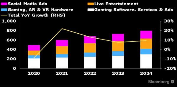 Per esempio, secondo Bloomberg Intelligence, il mercato del metaverso dovrebbe essere un mercato da 800 miliardi di dollari entro il 2024, illustrando le sue vaste caratteristiche, capacità e tecnologia.