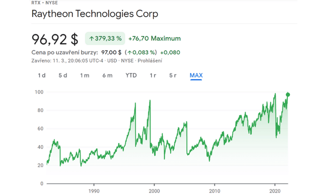 Per il secondo stock, passiamo al settore della difesa. Raytheon $RTX ha una lunga storia nella tecnologia aerospaziale e di intelligence, progettando e producendo motori per aerei, missili, sistemi avionici e satelliti di comunicazione e sorveglianza, tra gli altri prodotti avanzati. L'azienda è uno dei principali fornitori dell'esercito statunitense e fornisce sistemi di armi critiche.