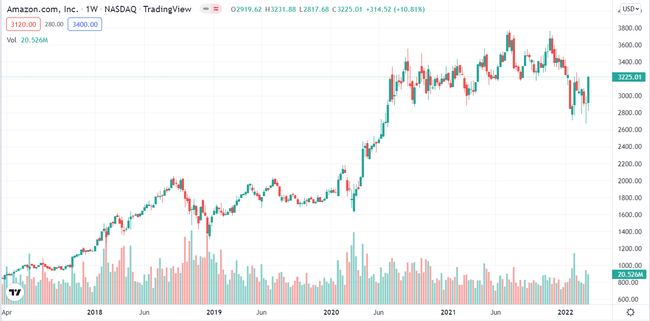 Ciò che potrebbe essere un po' preoccupante per gli investitori di Amazon è che il più grande concorrente online di Walmart, $WMThas ha visto unacrescita delle vendite online del 58% e del 63% negli ultimi due anni, quindi la concorrenza sta crescendo. Gli investitori di Amazon non dovrebbero preoccuparsi troppo, tuttavia, dato che l'azienda continua il suo regno come leader mondiale del mercato online per fatturato e capitalizzazione di mercato, e non sembra che perderà presto questo titolo. Inoltre, Amazon sta vivendo un cambiamento in cui il suo business a più alto margine è probabile che continui ad essere un importante generatore di entrate in futuro. Amazon Web Services (AWS) è la ragione per cui Amazon ha soppresso le sue stime sull'utile operativo del quarto trimestre, generando 5,3 miliardi di dollari di utile operativo nel Q4, un aumento del 49% anno su anno per il trimestre e la più grande crescita delle entrate trimestre su trimestre nella storia, che porta a 71 miliardi di dollari per l'intero anno 2021. Infatti, la crescita media annuale di AWS negli ultimi quattro anni è del 42,6%, rispetto al tasso medio di crescita della vendita al dettaglio online dell'azienda del 17% nello stesso periodo. Se entrambi i tassi di crescita rimangono costanti per il resto del decennio, AWS potrebbe superare la vendita al dettaglio nel fatturato totale entro il 2030. Gli investitori dovrebbero anche beneficiare del fatto che Amazon ha recentemente fornito notizie di un piano di riacquisto di azioni per 10 miliardi di dollari, segnalando la convinzione del management che le azioni della società valgono più del loro prezzo attuale. Inoltre, ha annunciato il primo split azionario dell'azienda in più di 20 anni, che fornirà 20 azioni per ogni azione posseduta dagli investitori record a partire dal 27 maggio.