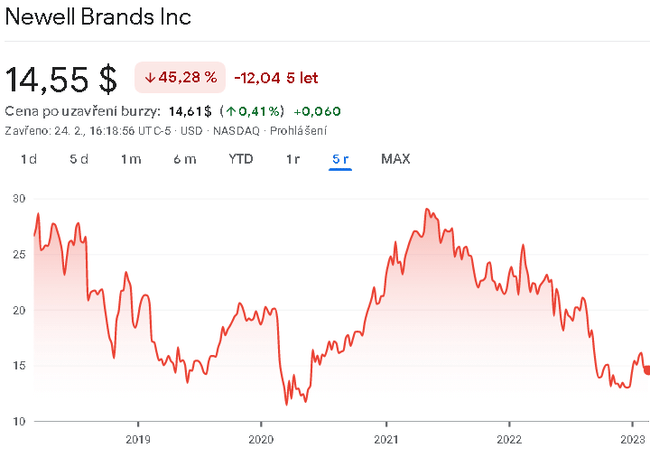 Newell Brands Inc. è un'azienda di prodotti di consumo che progetta, produce e distribuisce una gamma di prodotti di consumo e commerciali a livello globale. L'azienda è stata fondata nel 1903 e ha sede ad Atlanta, Georgia, USA. L'azienda ha un rendimento da dividendo di circa il 6%.