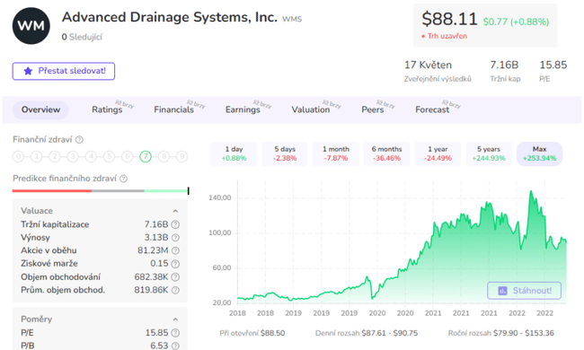 L'azienda in questione è Advanced Drainage Systems $WMS, che si occupa della produzione e della vendita di soluzioni innovative per il trattamento e il drenaggio delle acque superficiali, l'igiene, il controllo dell'erosione e delle inondazioni.