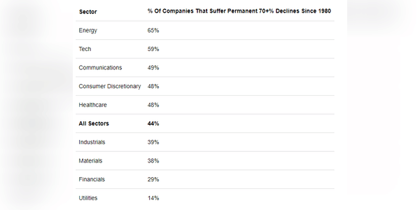 Dal 1980, il 44% di tutti i titoli statunitensi ha subito perdite sostenute superiori al 70%. Questi autobus hanno perso le ruote, sono finiti in un fosso…