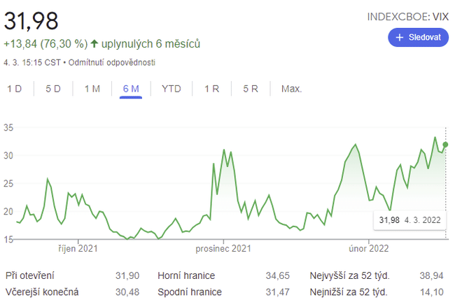 Sia che abbiate i vostri sudati risparmi in azioni, criptovalute, obbligazioni, o puramente in valute fiat, dovreste sicuramente essere vigili in questi ultimi giorni. Perché un potenziale crollo del mercato non influenzerebbe solo il prezzo delle azioni, ma anche, per esempio, i prezzi di molte criptovalute fiat e decentralizzate. L'attuale situazione in Ucraina è molto imprevedibile e il suo futuro sviluppo negativo e l'impatto sui mercati mondiali non possono essere previsti con precisione in questo momento. Tuttavia, c'è un indice che è salito significativamente di recente e che potrebbe contenere la risposta a dove i mercati si dirigeranno nei prossimi giorni.
