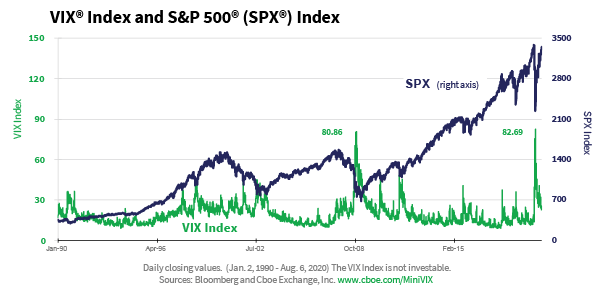 Secondo il Chicago Board Options Exchange, "L'indice VIX $^VIX è un calcolo progettato per creare una misura della volatilità attesa costante a 30 giorni del mercato azionario statunitense, derivata dai prezzi medi in tempo reale di domanda e offerta delle opzioni dell'indice S&P 500 $^GSPC ". L'indice VIX è stato introdotto nel 1993.